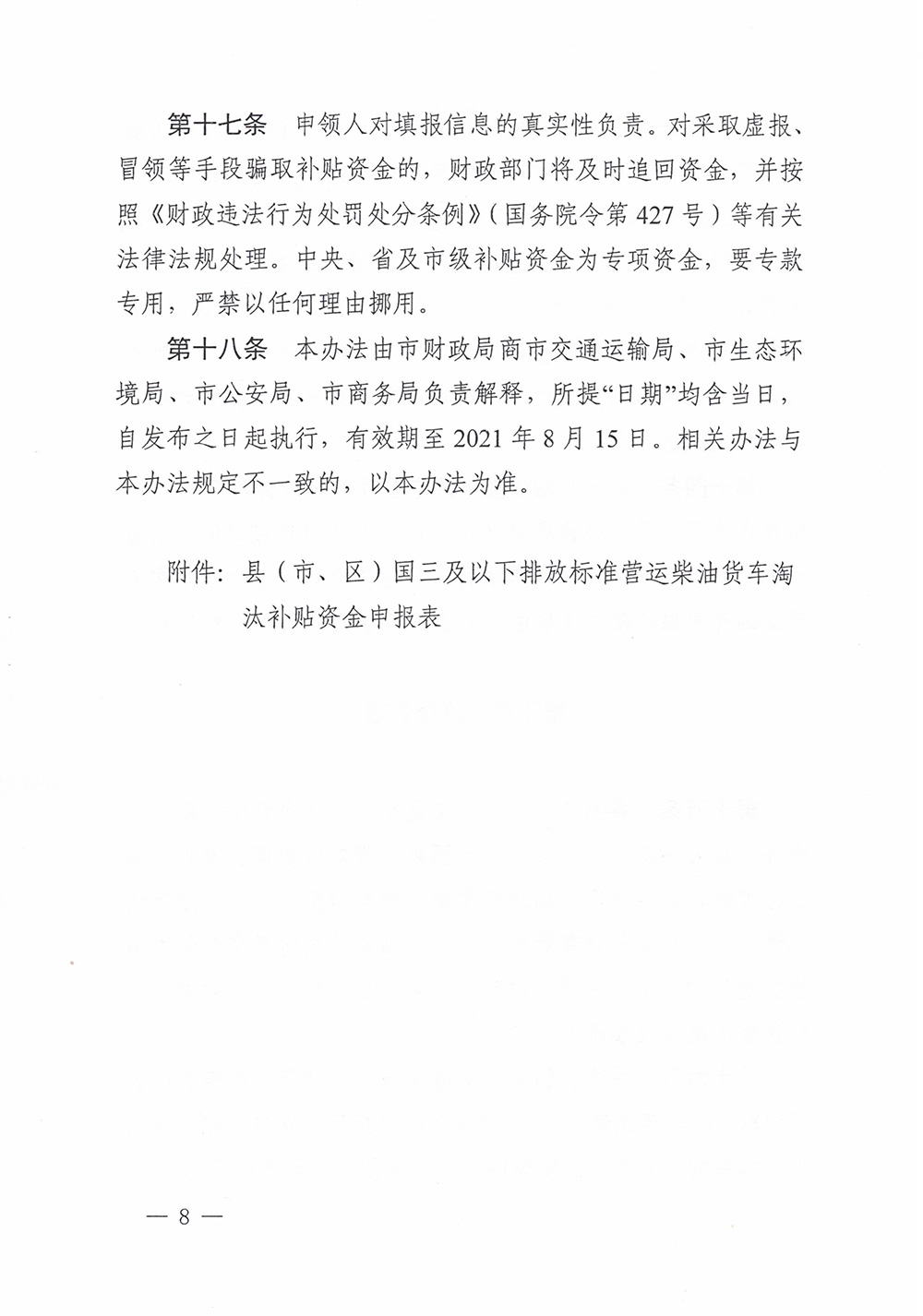 洛財建(2020)11號《洛陽市淘汰國三及以下排放標(biāo)準(zhǔn)營運柴油貨車財政補貼資金管理辦法》的通知 發(fā)布時間:2020-12-24 訪問量:2169 上一篇:沒有了 下一篇:權(quán)威!洛陽5部門印發(fā)重要文件......